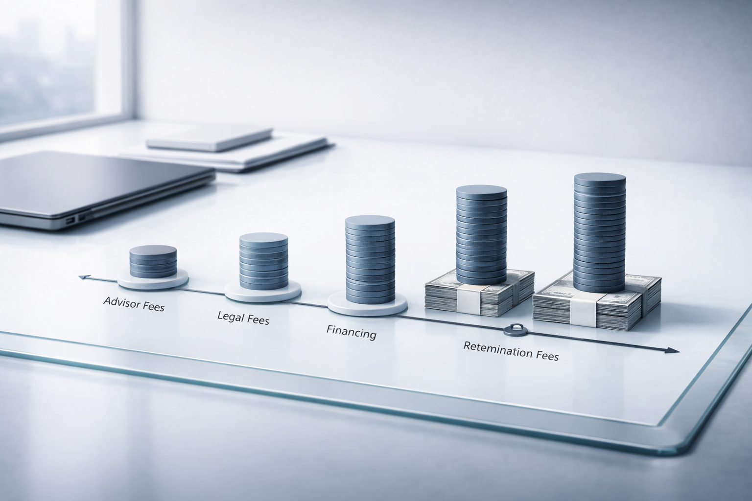 This matters because each bucket behaves differently under stress. If the timeline extends, fixed retainers and professional costs can keep rising even if success fees do not.